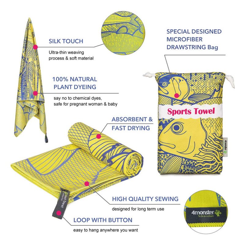 4Monster Microfiber Beach Towel Quick Dry,Super Absorbent Lightweight Travel Towel for Swimmers, Sand Free Camping Towel, Beach Towels for Pool, Swim, Water Sports,Yoga,Gym,Backpacking