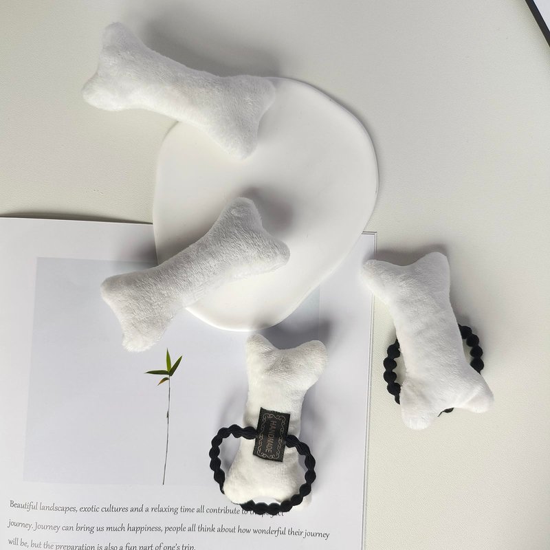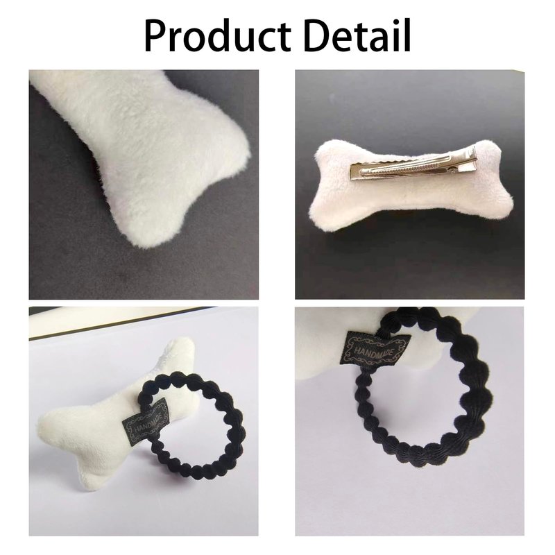- Including 2pcs white plush bone hair clips and 2pcs plush bone hair elastic ties