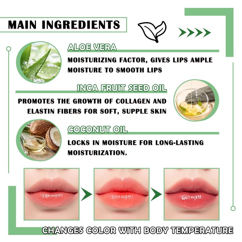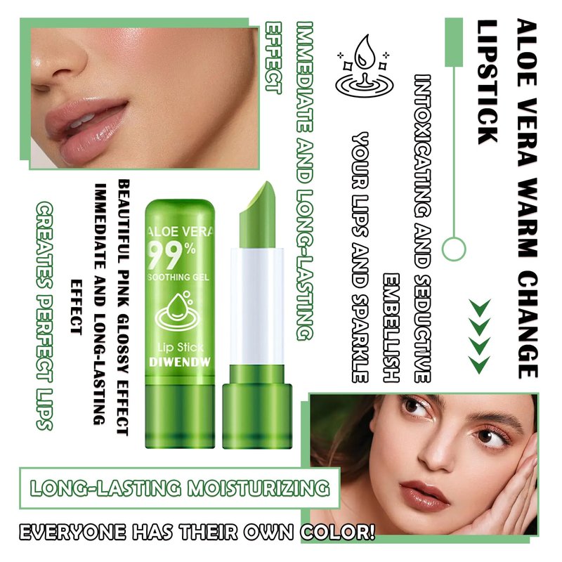 - đăAloe Vera LipstickăAloe vera lipstick can change color according to body temperature and PH level, the higher the temperature, the more obvious the color change, to create your own color.