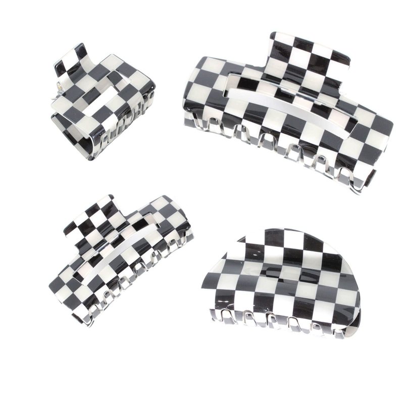 • ★Good design: Classic black white checked pattern. There are 4 different hair clips shapes, including square and semicircle, enough to match your different hairstyles.