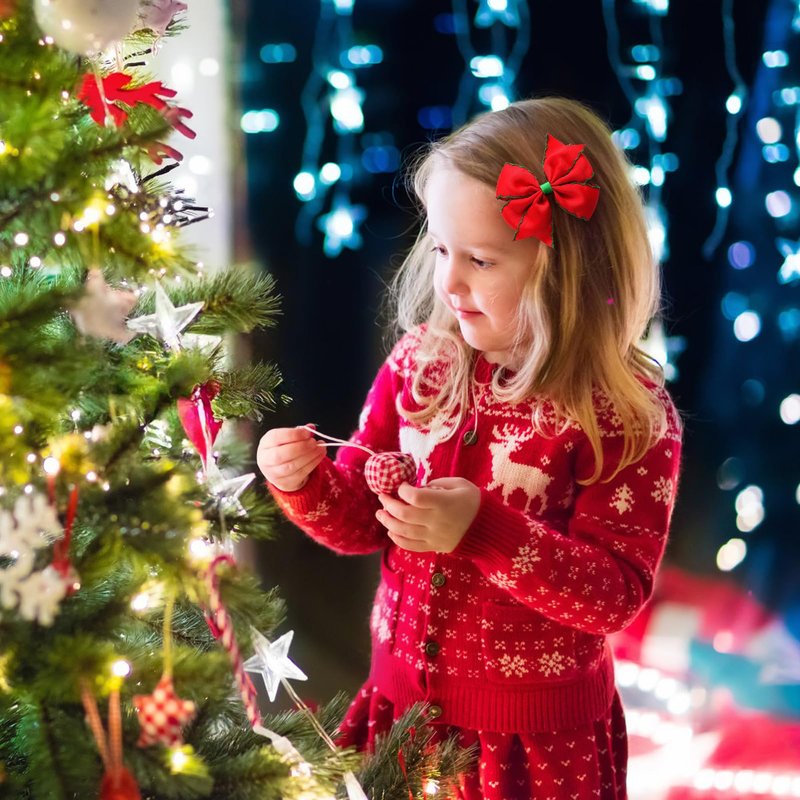 4pcs red and green bow hair clips. They will be a perfect matching to Christmas costumes or Christmas decorations. Christmas hair bows alligator hair clip. The clip is under the bowknot, each bow is firmly attached to the alligator clip by glue. Cute hair bows alligator hair clip can be used not only as a hair accessory, be used to decorate Christmas gifts, wreaths, garland, bags.