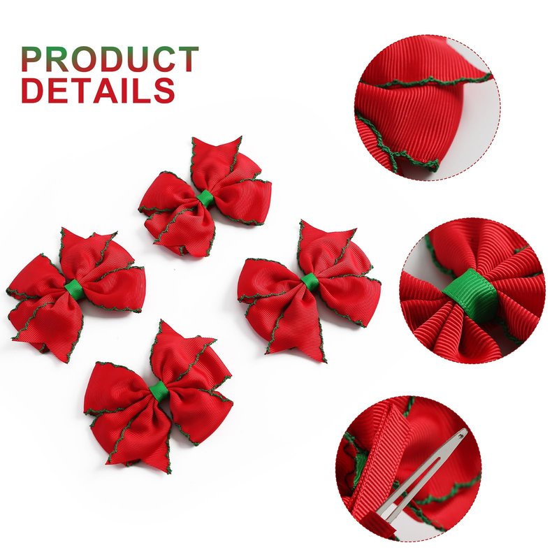 • Package included: 4pcs red and green bow hair clips. They will be a perfect matching to Christmas costumes or Christmas decor.
