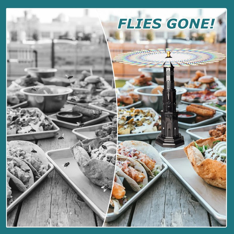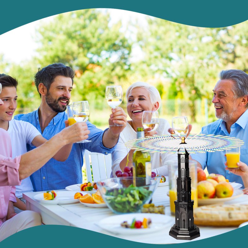 - 【Palace-shaped Fly Repellent Fan】 The latest upgraded design in 2024, not only effectively repels flies and other insects but also serves as a decoration for your picnic table. Sold in sets of four, it brings a whole new picnic experience to you.