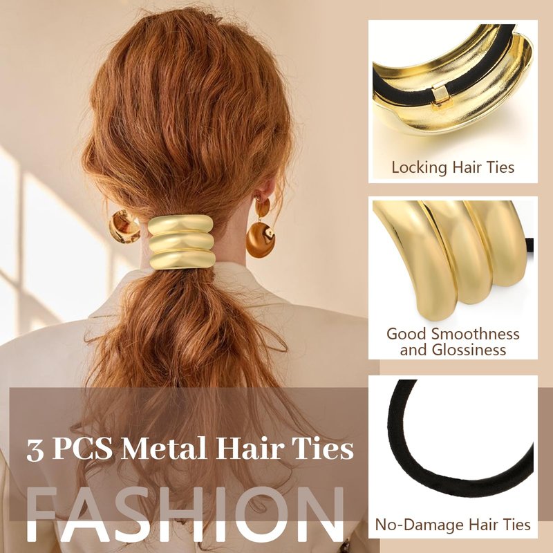 - Elegant Metal Hair Ties: Our gold hair ties are made of premium alloy materials, and are carefully polished and processed to make the metal accessories have good glossiness and not easy to fade