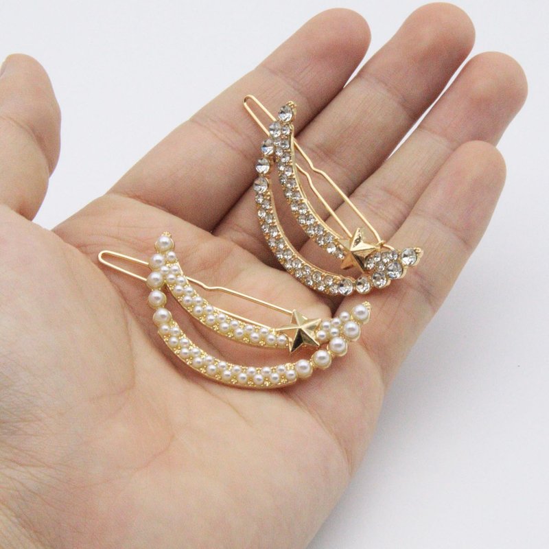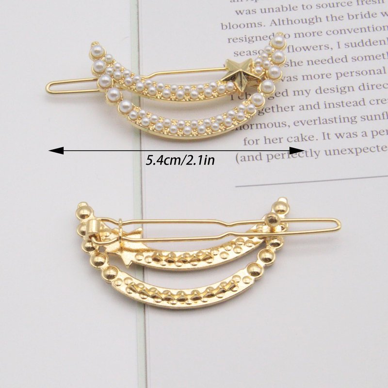 4Pcs Gold Moon Pearl Hair Clips Sparkly Rhinestone Clips Star Small Metal Hair Barrettes Decorative Wedding Hair Accessories for Women Girls Bride
