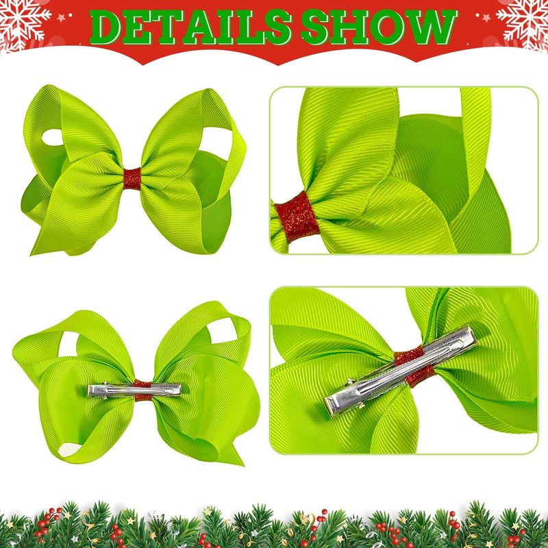 4Pcs Green Hair Bow Clips for Christmas Decorations Women Costume Accessories Dress up