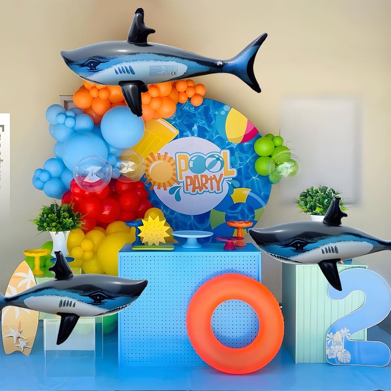 - 2.Pretty Party Decorations: Our inflatable shark balloon is an interesting party decoration, a lovely pool toy and a funny gift, also nice for ocean themed parties, pool parties, birthday parties or Halloween,christmas events, etc