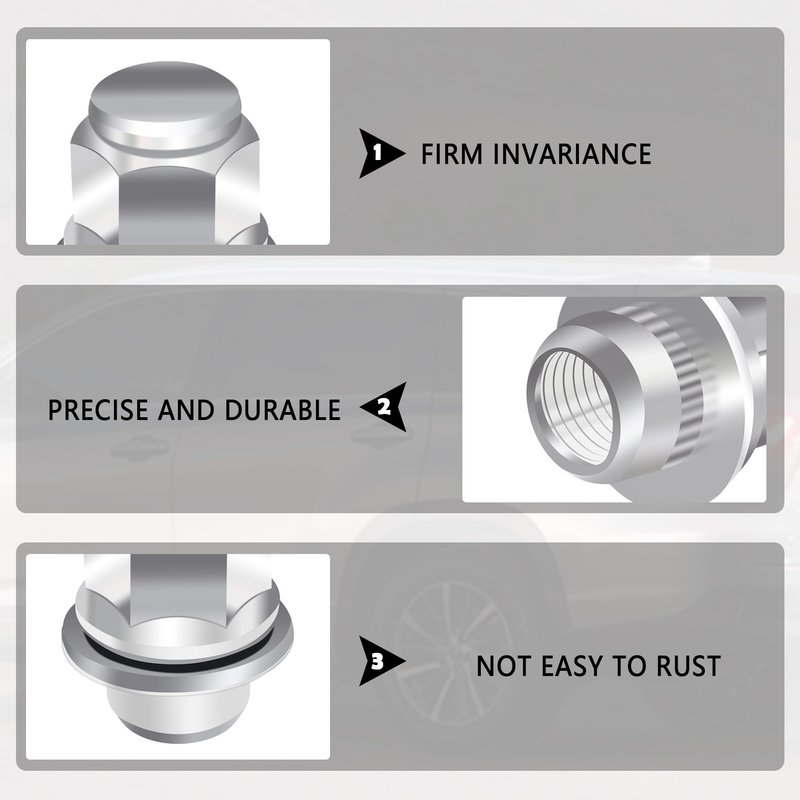 - 🔩 Selected Steel Materials - We select premium quality steel for our M12x1.5 lug nuts to ensure strength and wear resistance. Heat-treatedchrome-plated surface further ensures the durability of the nut and is not easily deformed or damaged. These lug nuts are your must-have car parts.