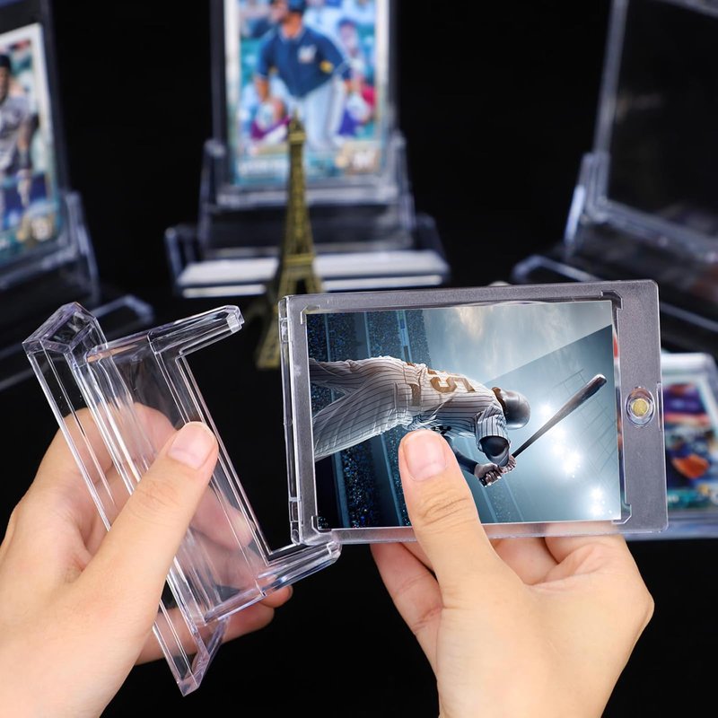 - Package Contents : You will get 4 pcs of 35PT magnetic trading card holders and 4 pcs bases, storing and displaying your cherished trading cards