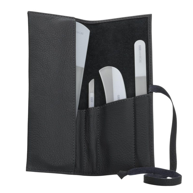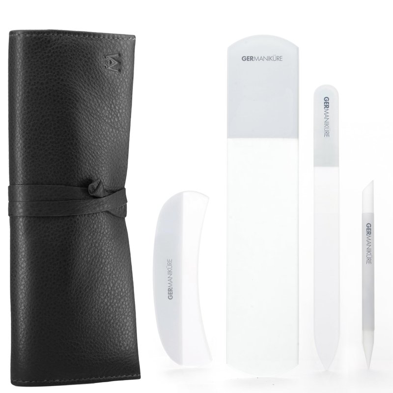 4pcs Manicure Set Genuine Czech Crystal Glass Nail File Moon File Manicure Stick Pedicure Foot Care Bar in Leather by GERmanikure