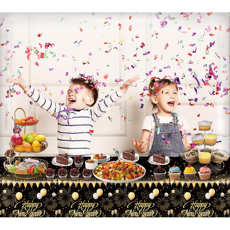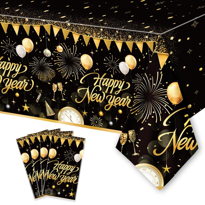 - Durable Material: Made of quality plastic,all our happy new year table covers are highly opaque and provide full coverage for your tables. No fading, no shrinkage, heavy duty, waterproof, portable,easy to clean.