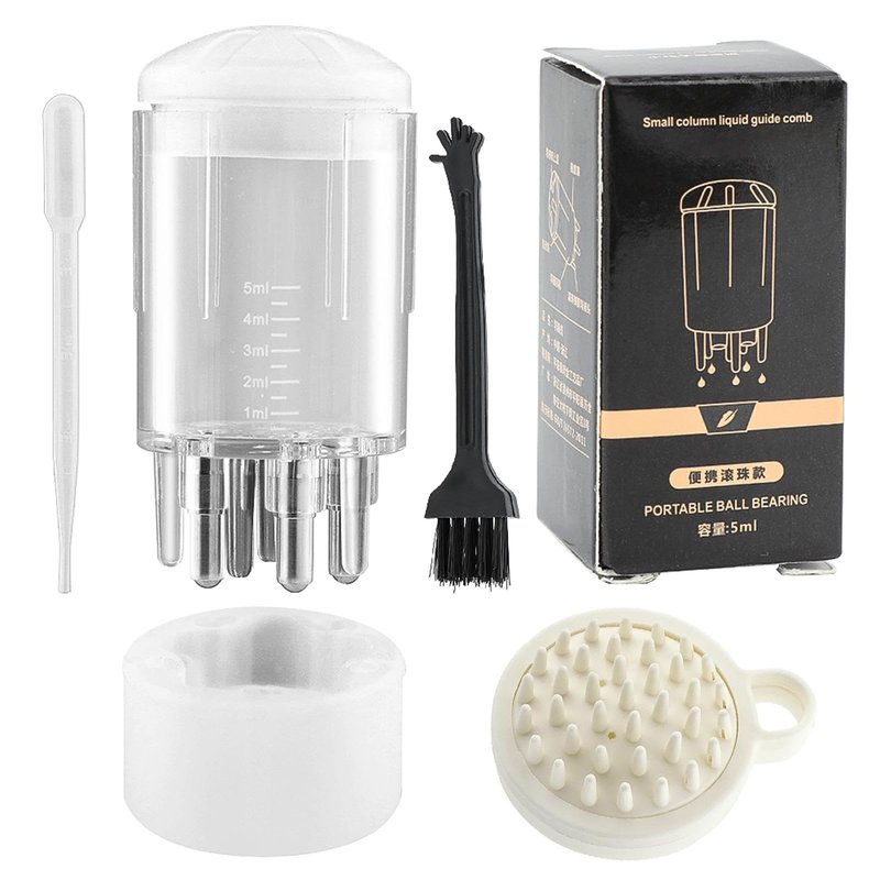 Material: scalp applicator comb(silicone lid+plastic bottle+stainless steel roll ball), massage comb(PP+TPE)