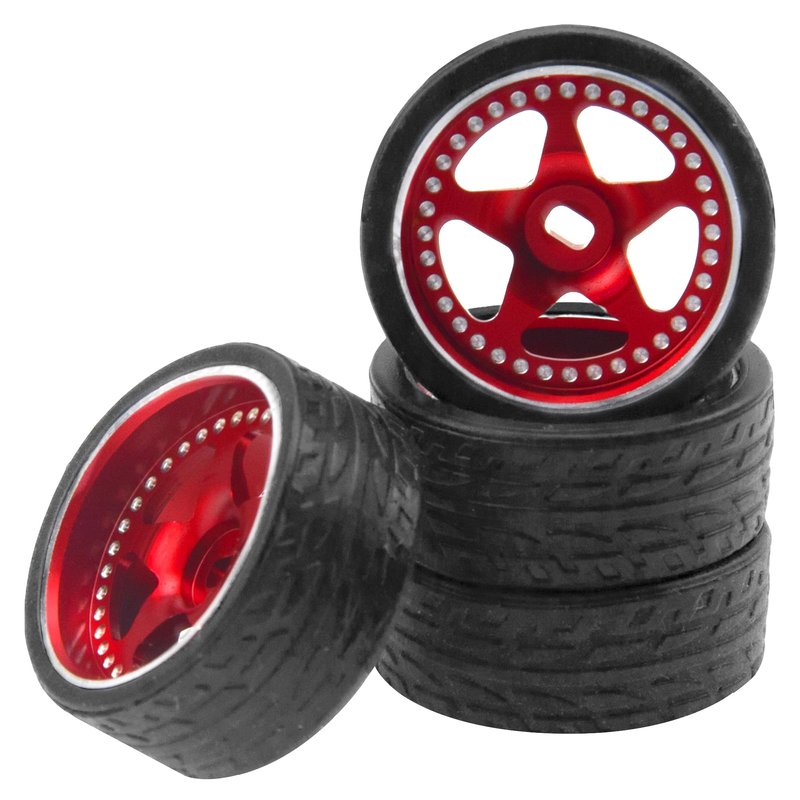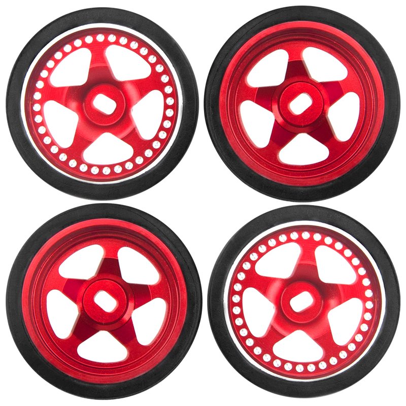 - The 1/28 wheels rims made aluminum alloy material, the tires made of rubber material,great for racing.