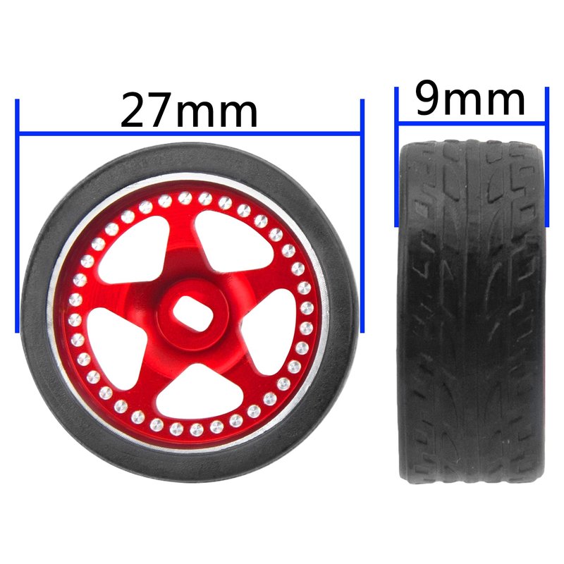 - Tires Outside Diameter: 27mm/1.06 "; Width: 11mm/0.43".Rim Color:Red/Blue(Optional);