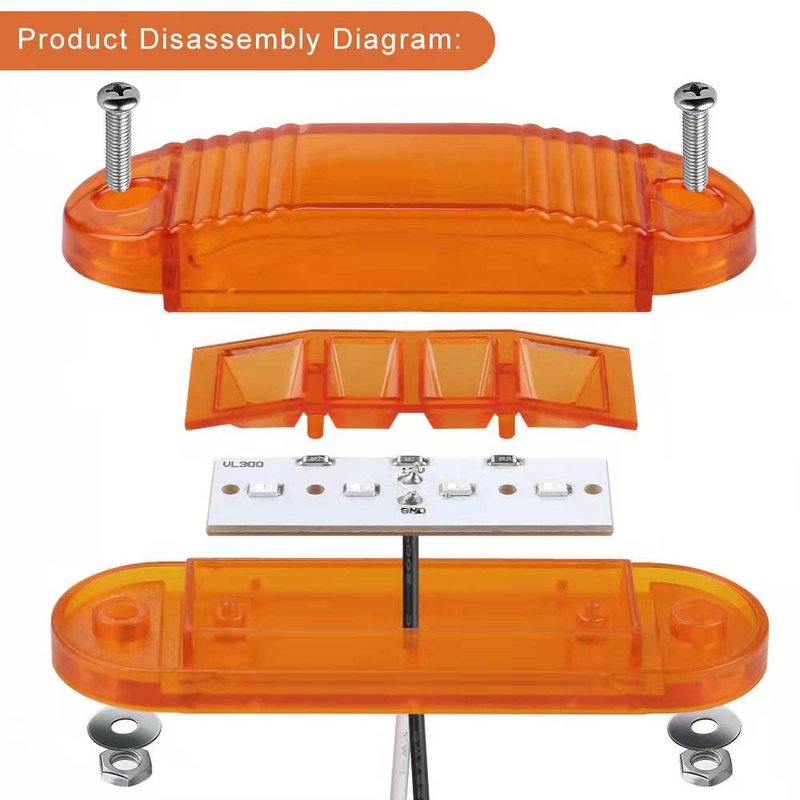 4pcs Trailer Lights Oval Led Side Marker Light, Surface Mount for Front Rear Trailer Truck RV Little Boat Camper (Amber) (White), KSH-777