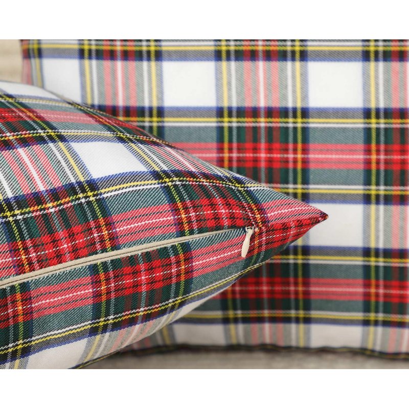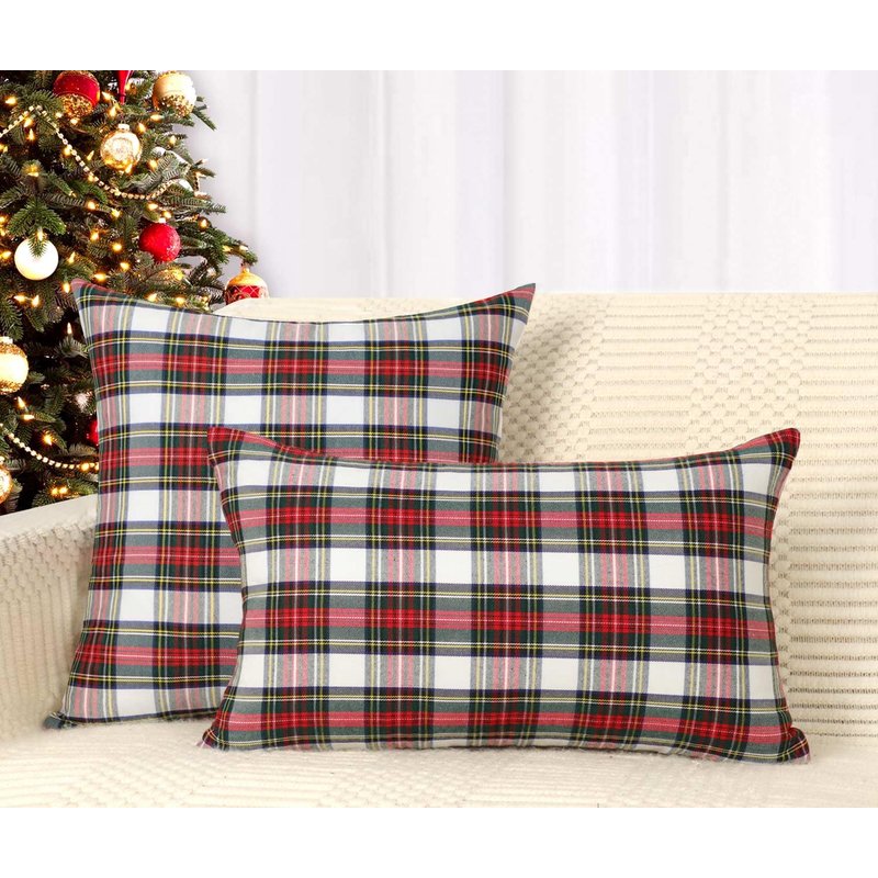 4TH Emotion Set of 2 Christmas Scottish Tartan Plaid Throw Pillow Covers Cushion Case Polyester for Farmhouse Home Decor Red and White, 18 x 18 Inches