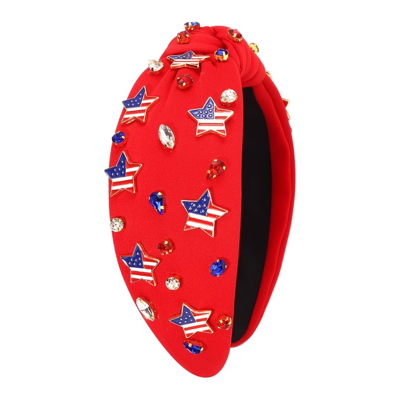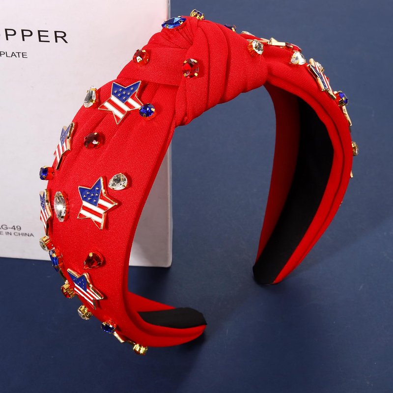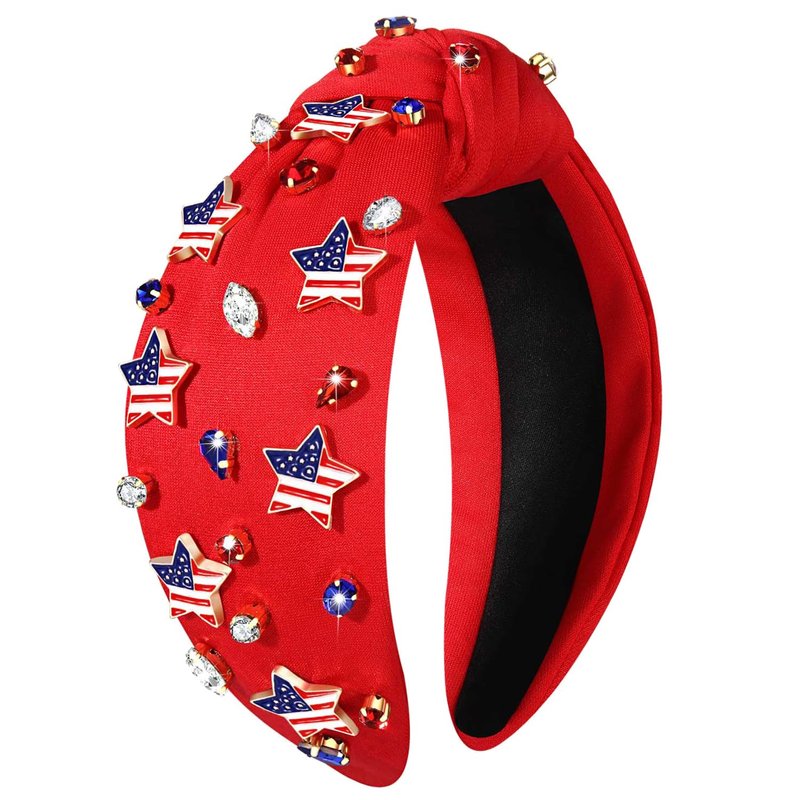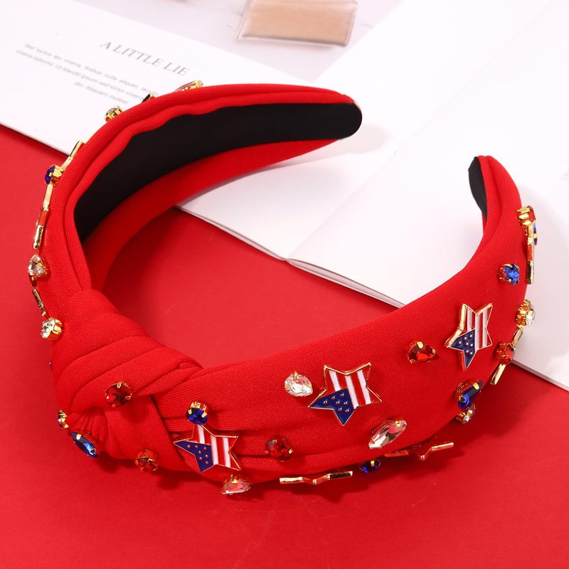 - ♥Rhinestone Knotted Headband -- Get ready for the Fourth of July with this jeweled top knot headband. Pair them with your favorite tees, tank tops, shorts, cut-offs, jeans and sundresses for a cute and festive patriotic outfits. Your patriotism is on full display with this red, white and blue American flag hairband. These will look great as we celebrate our great Memorial Day, Flag Day, or Fourth of July!