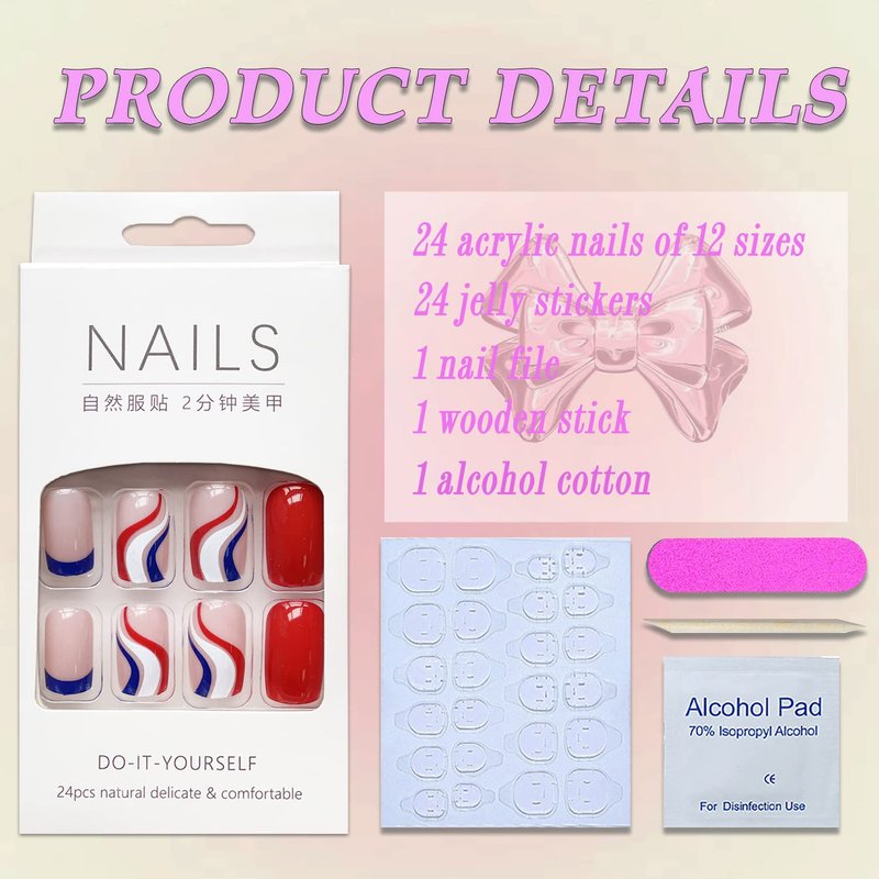 • 【Widely Used】 The press on nails is suitable for independence day, prom, party or any great occasion, a great gift idea for your wife, girlfriend, mother or sister. Also suitable for any DIY nail art, family day or getting ready for a date.