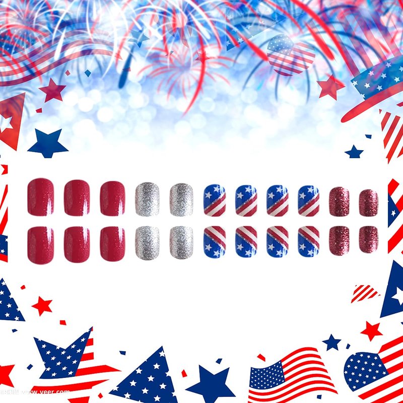 - Easy to Use: It only takes 5 minutes to get your favorite nails. The 4th of July Acrylic Nails is also easy to file and trim, making nails more suitable for our natural nails. A few simple steps will make it easy for you to get the effect of doing a nail salon at home.