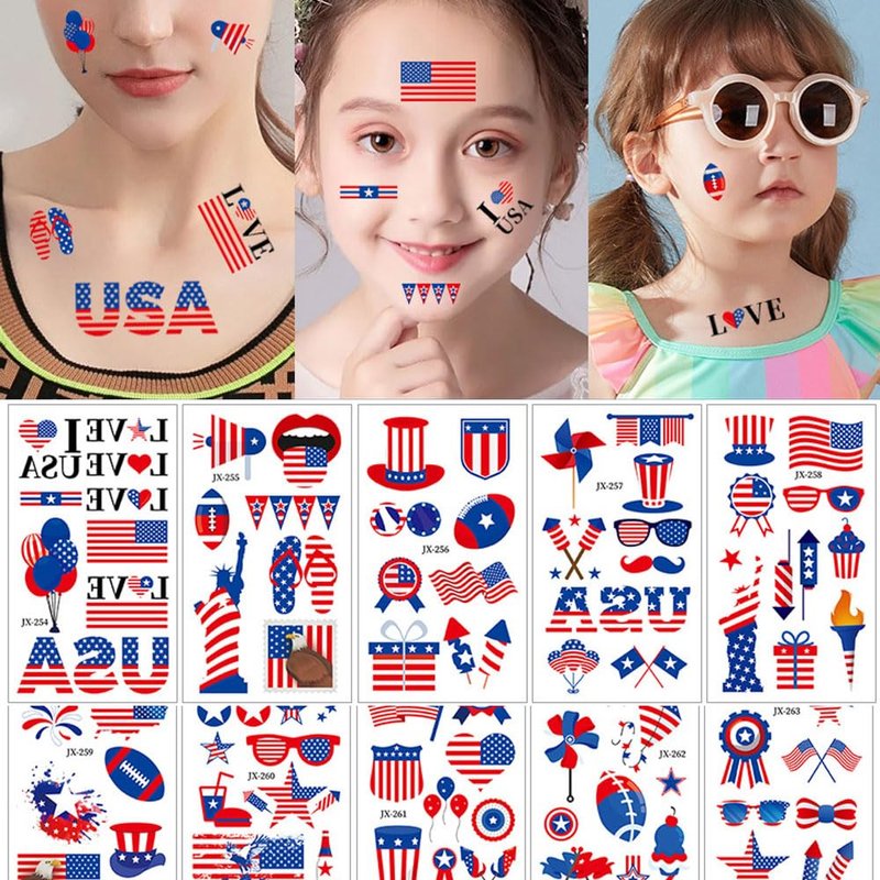- - Versatile Use: Ideal for July 4th decorations, these tattoos are a great addition to parties, events, or as DIY decorations. Apply them on your body and face to enhance the patriotic vibes