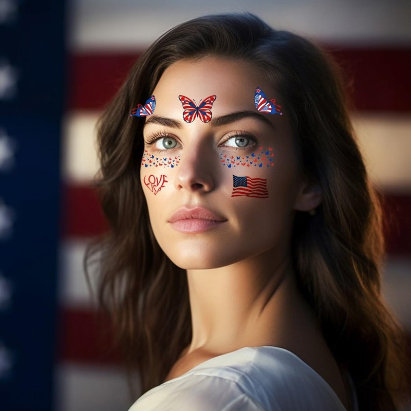 - 🥳【Easy To Apply】Independence Day face temporary tattoos have clear patterns, are waterproof, and will last for days. It can be easily applied within 10-20 seconds by simply wiping with water and can be cleaned off by alcohol, body oil, or olive oil.
