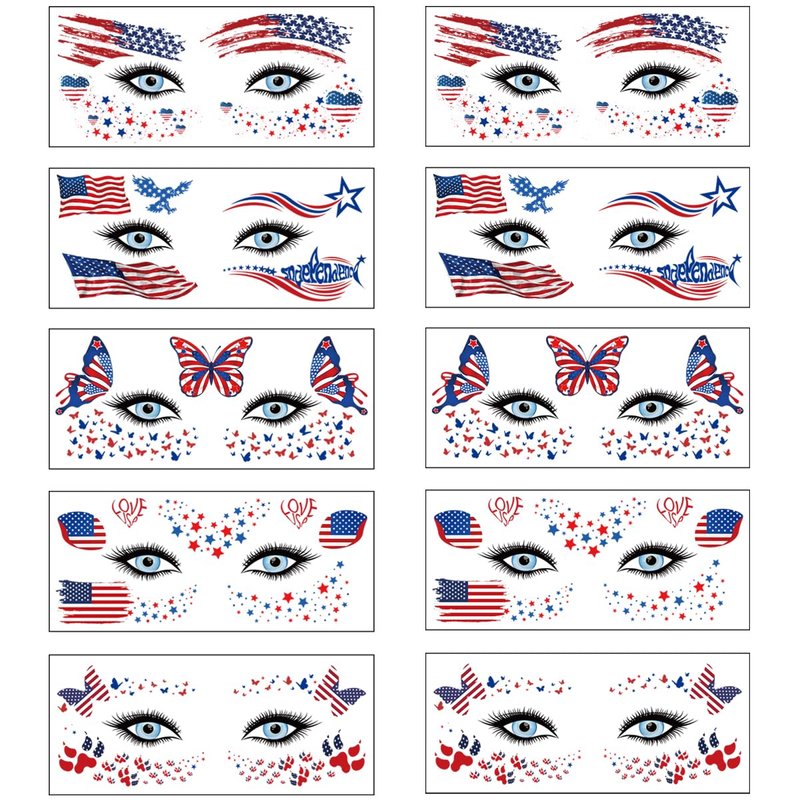 - 🥳【Package】You will receive 10 patriotic theme face tattoo stickers! These classic and fashionable Independence Day-themed face temporary tattoos are suitable for children and adults.