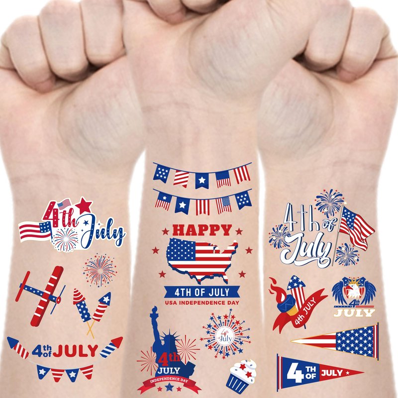 - LASTING AND DURABLE: 4th of July Temporary tattoos are tested and guaranteed to last all day, the tattoo stickers won't wear out from water and friction once applied.