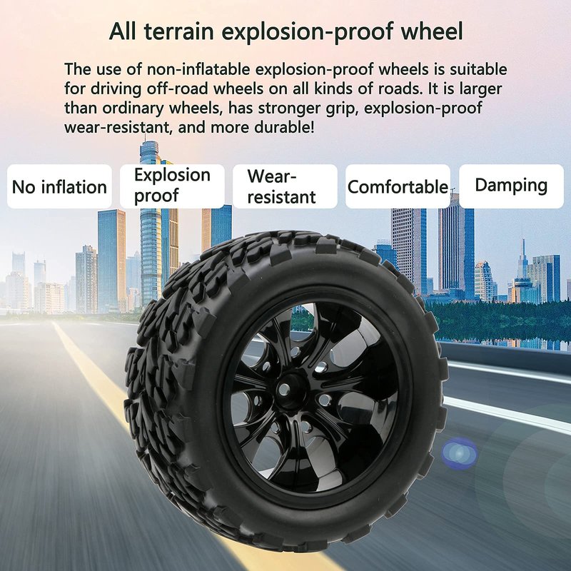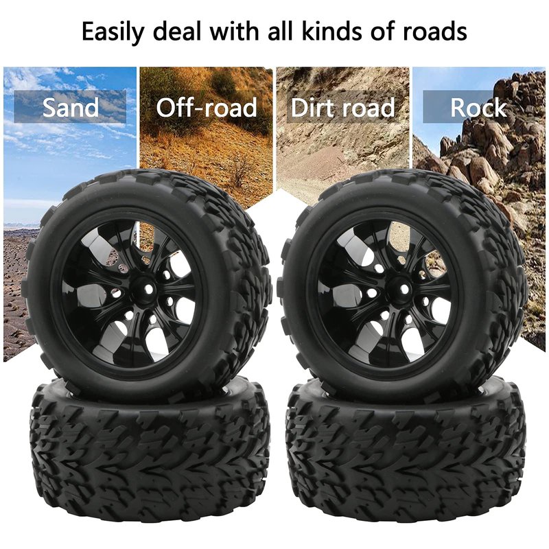 - Suitable for 1:10 Scale Brushed Monster Trucks; 12mm RC Wheels and Tires for Traxxas HSP Hosim Exceed RC etc.