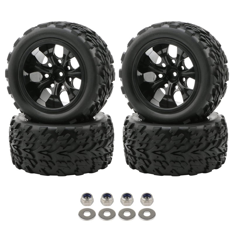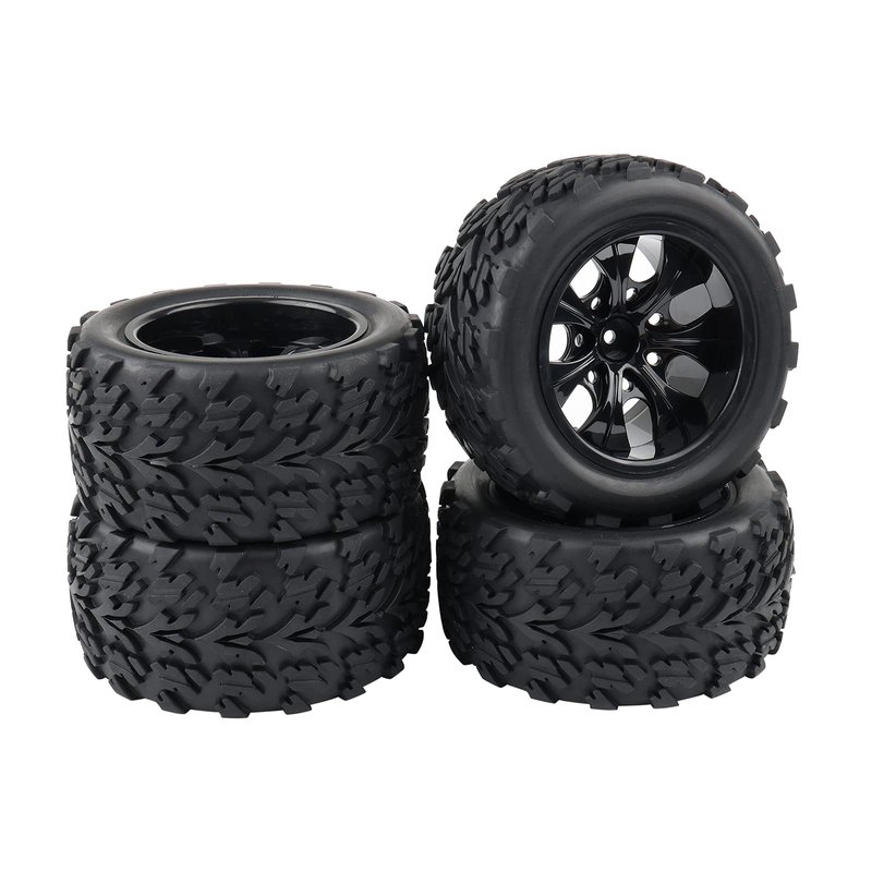 4x 1:10 RC Monster Truck Car Wheels Rubber RC Tires with 7 Spokes Wheel Rim Black RC Parts