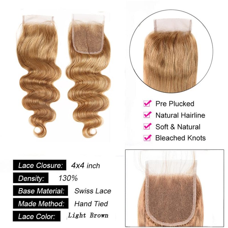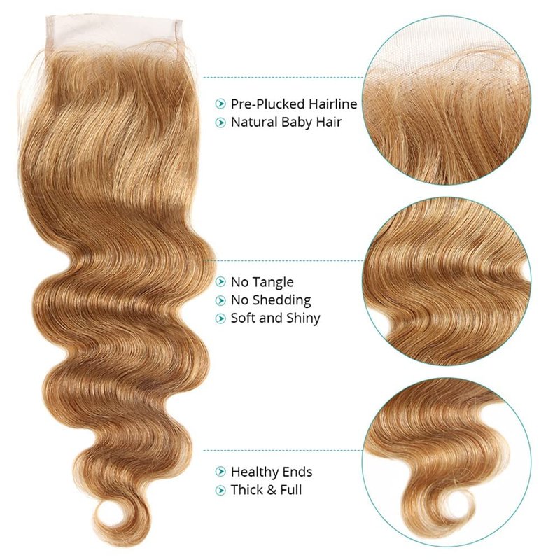 - Hair Color:Honey Blonde Lace Closure(#27);Lace Color:Light Brown Lace Color,Can Match Naturally With Your Skin Tone.