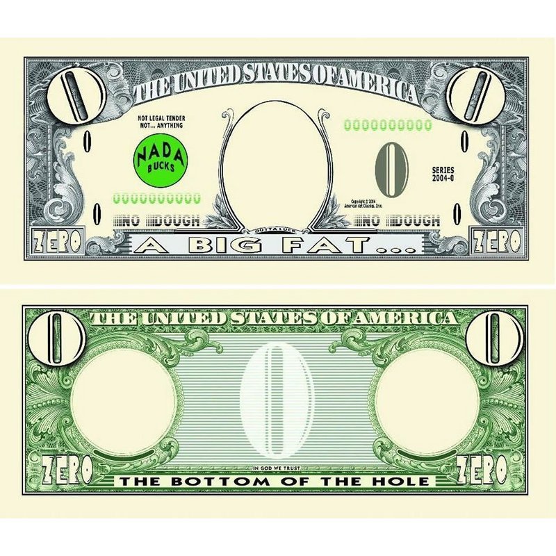 5 Big Fat Zero Dollar Bills with Bonus “Thanks a Million” Gift Card Set