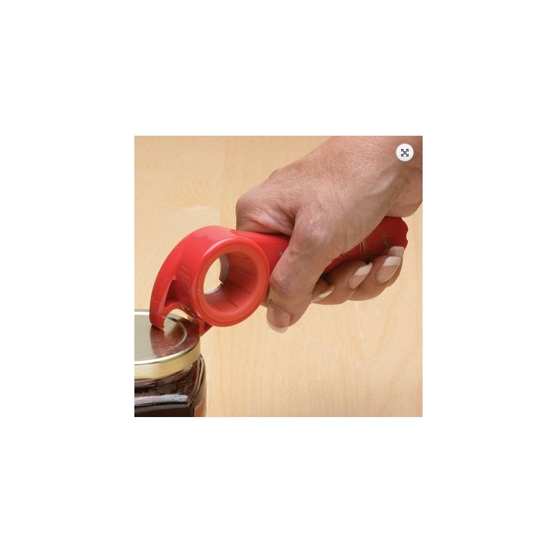 5-in-1 All Purpose Opener helps eliminate stress and discomfort on hands. 5-in-1 All Purpose Opener easily opens cans, bottles and jars. Ergonomically designed for a secure, comfortable, grip. Gently releases the vacuum seal on jars for easy opening. Dishwasher safe. Color may vary.