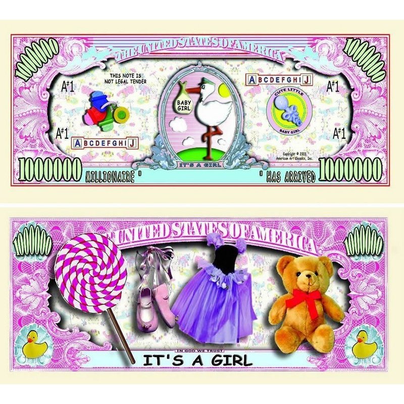 5 It's A Girl Million Dollar Baby Bills with Bonus “Thanks a Million” Gift Card Set