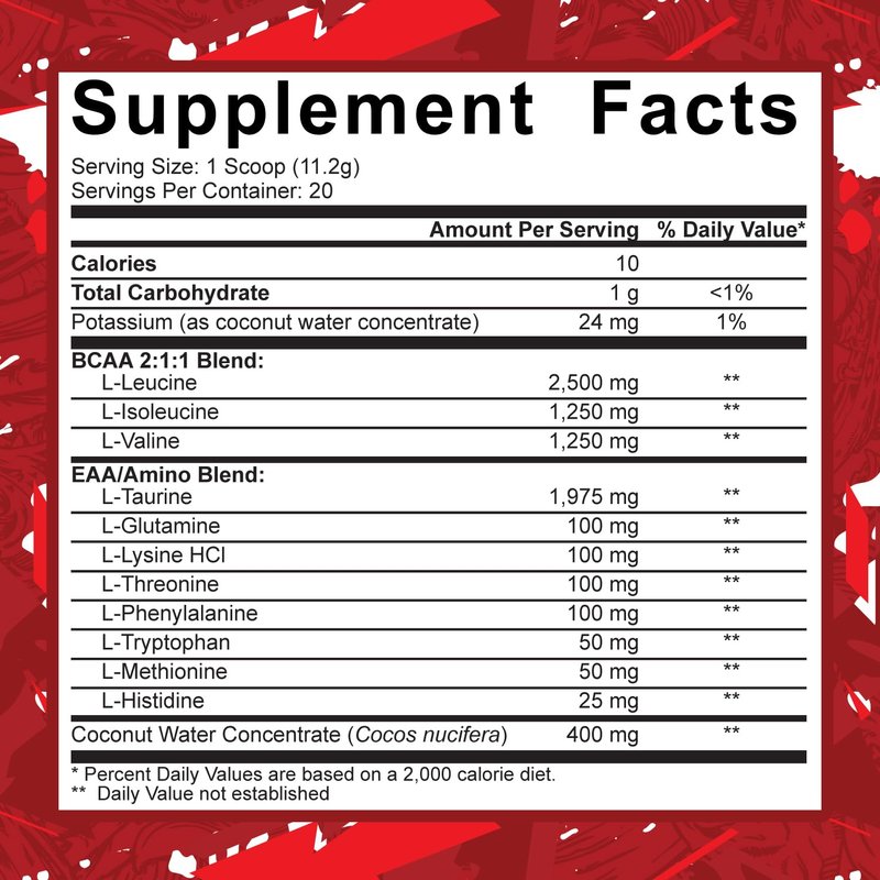 - UNLOCK YOUR POTENTIAL with recovery-enhancing Code Red Aminos. Anchored by L-Leucine, L-Isoleucine, and L-Valine in a precise 2:1:1 ratio, this BCAA blend is your proven weapon for muscle growth, healing and hitting your milestones with confidence.