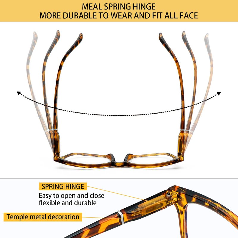 - 【Comfortable Readers】- Fashionable comfortable eyewear frame adopts flexible spring hinge design, and the glasses legs can provide 115 ° external diffusion, which can be worn flexibly according to the shape and width of the face.