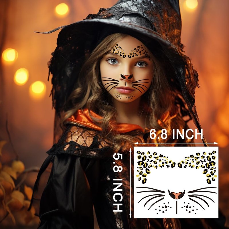 - PERFECT FOR HALLOWEEN & COSPLAY - These Halloween face tattoos are ideal for cosplay, costume parties, and especially for Halloween. Transform into a fierce cheetah with ease, making your cosplay face tattoos the highlight of the event.