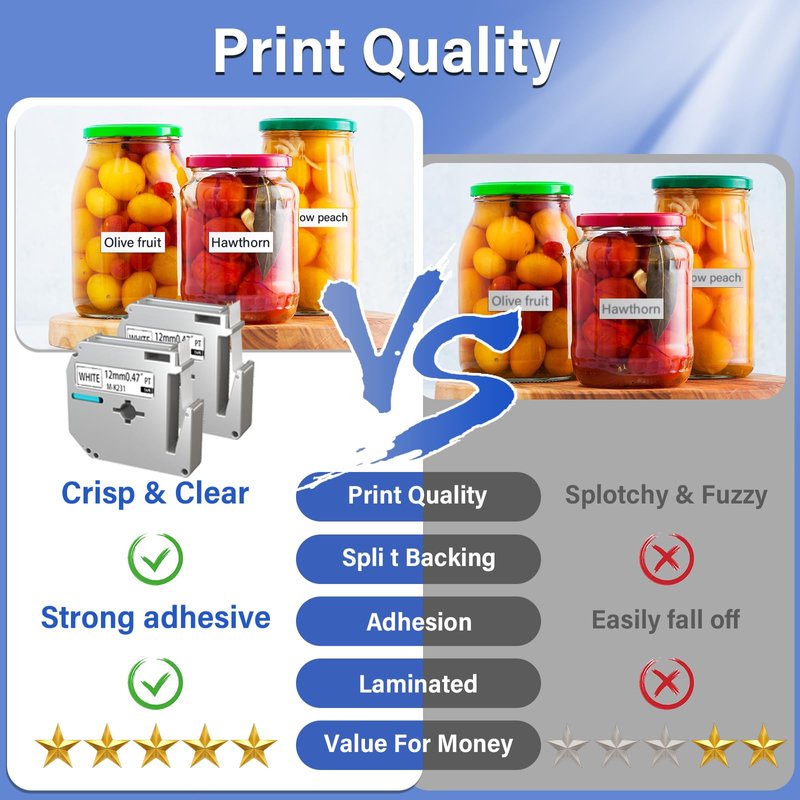 - Package: 5-pack compatible with brother m tape and brother label maker tape m-k231 m231 m-k231S mk231 m-231 white tape. Size: 1/2 inch x26.2 feet or 12mm x 8m each. Color: Black on white thermal tape non-laminated