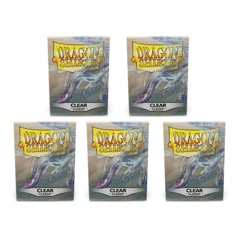 5 Packs Dragon Shield Classic Clear Standard Size 100 ct Card Sleeves Value Bundle!