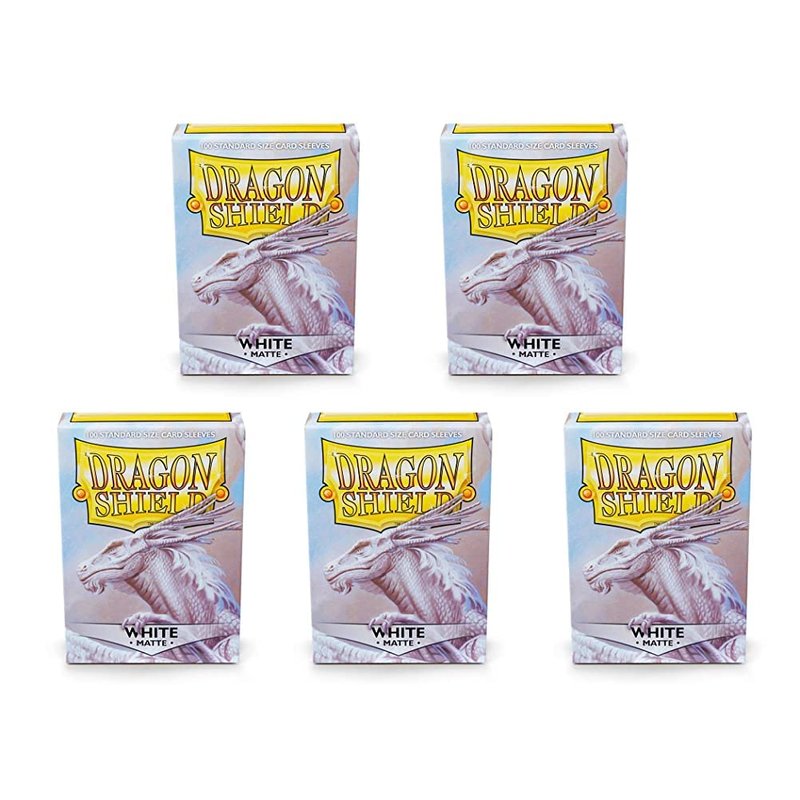 5 Packs Dragon Shield Matte White Standard Size 100 ct Card Sleeves Value Bundle!