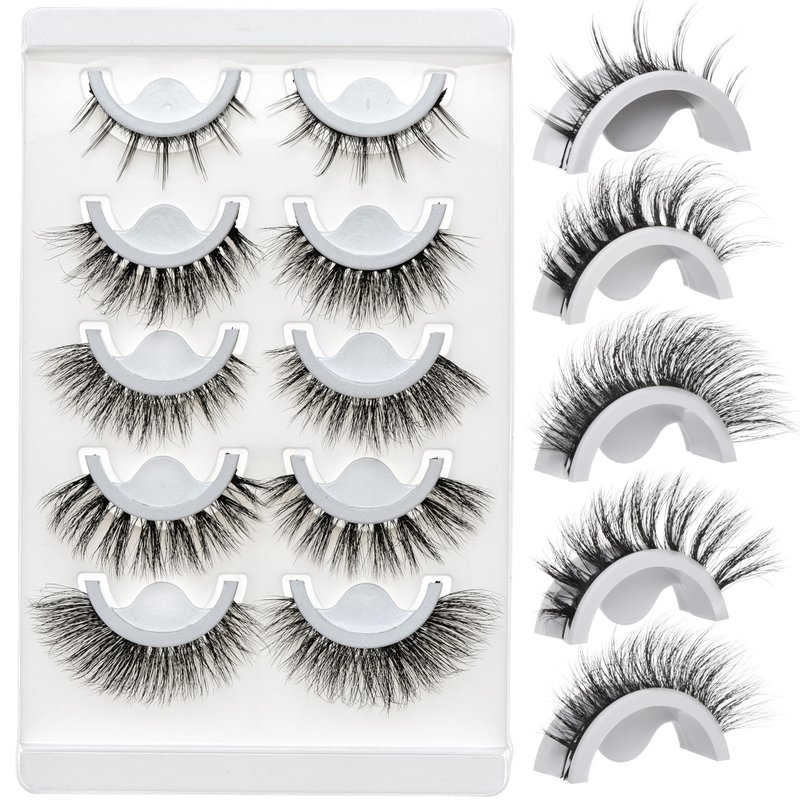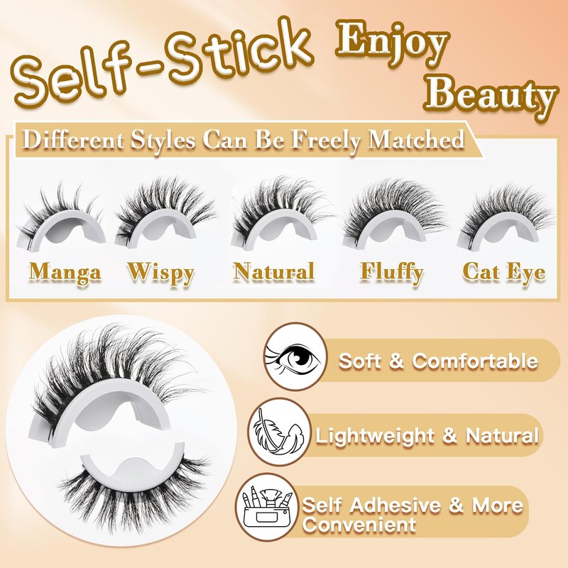5 Pairs Self Adhesive Eyelashes 5 Styles Fluffy Self-adhesive False Eyelashes, Wispy Natural Lahes Waterproof & Sweatproof Reusable No Glue Needed,by Anforlin
