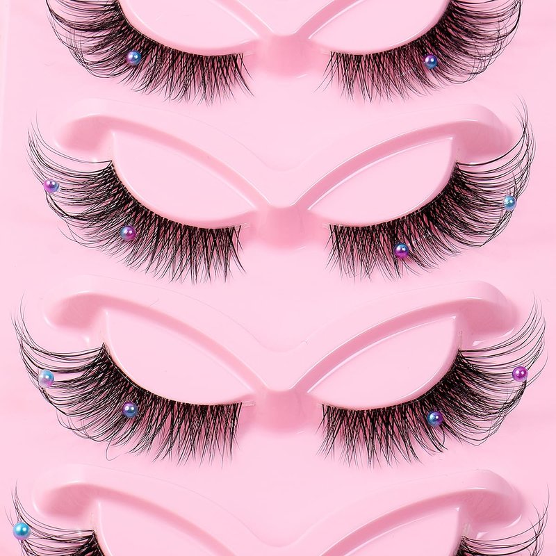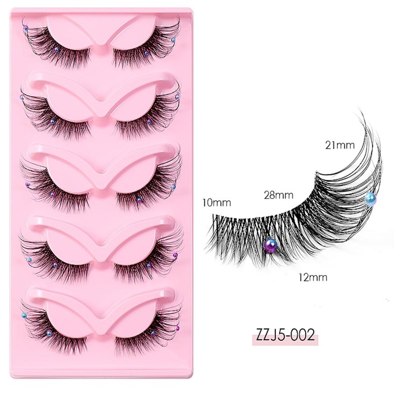 5 Pairs Wispy Lashes Pearl False Eyelashes Fluffy Natural Look False Eyelashes Thick Soft Curly Lash Extensions - Easy Application-Colorful