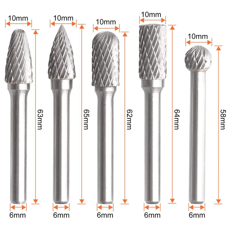 - 1/4” Shank Rotary Carbide Burr: Shank diameter: 6 mm(1/4 inch), Cutting edge diameter: 10 mm(0.39 inch), Total length: 50 mm(2 inch).Please check the size before you buy it