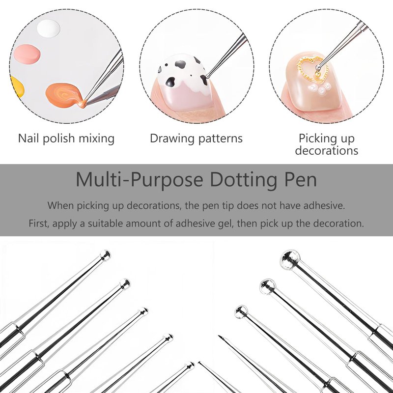 - Versatile Dotting Pen Set: Our set includes five dotting pens with double-headed nibs of different sizes, making them ideal for creating dots of various sizes and intricate designs. Whether you're a professional nail artist or a DIY enthusiast, these pens are perfect for adding decorative touches to your nails.