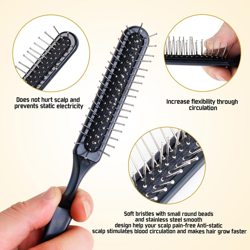 - 3-row design: The 3-row styling comb adopts steel needle design, which can easily penetrate the hair without pain, and the 3-row toothed hair comb is evenly distributed throughout the hair, making your hair look fuller. Help you create the hairstyle you want.