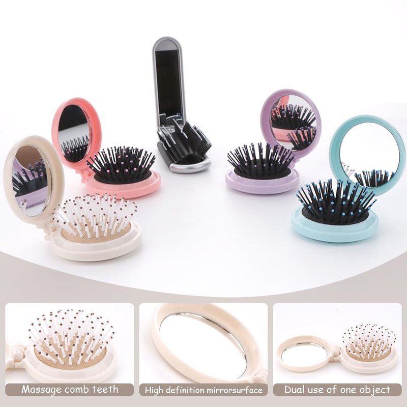 5 Pcs Travel Mirror Hair Brushes Folding Pocket...