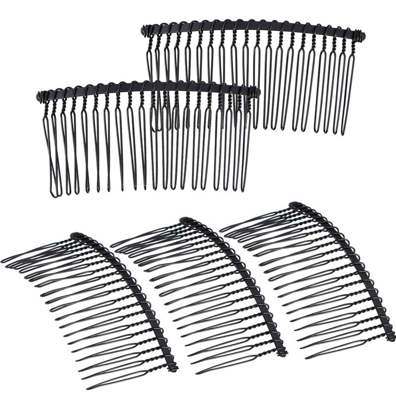 Features:Hair clip combs set: Hair combs are made of metal material, rust rust resistant, durable to use, and with smooth surface, won't hurt your hair and scalp. Proper size for inserting into your hair. These metal hair comb have 20 teeth, and each tooth is looped and twisted, can hold hair securely and comfortably, keep your hair in place.Wide application:Useful for anchoring tiaras and adornments, DIY many hair pieces, headdresses and craft project, can be embellished, sewn onto wedding veils.Specifications:Material: metalColor: golden and black color for you to chooseSize: approx. 7.5 cm/ 3 inch in length and 3.36 cm/ 1.8 inch in widthQuantity: 5 piecesPackage includes:5 x Hair clip combsNote:Do not use it with too much strength, or it will be out of shape.The number of teeth may vary slightly.