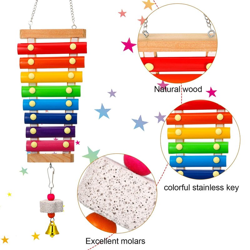 - Quality material: the base of the chicken xylophone toy is made of wood, the keys are made of metal, the mirror is made of pine wood, and the grinding stone is made of calcium stone, which is reliable and durable, safe for your pet birds to play and peck