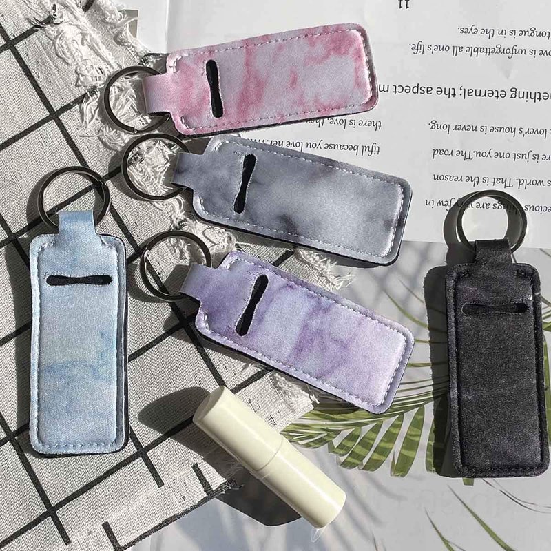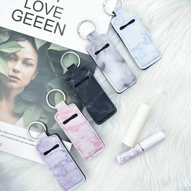- 【Premium Material】Each of our chapstick holder keychains is hand made with premium neoprene, elastic, evenly stitch, soft, durable and anti-wearing. Easy to carry and hang on your bag. Exquisite and stylish, marble printing patterns design, black, purple, cyan, pink, gray, 5 kinds of beautiful colors for you to match with different accessories