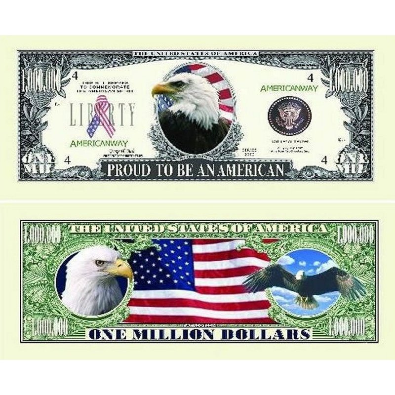 5 Proud American Eagle Million Dollar Bills with Bonus “Thanks a Million” Gift Card Set