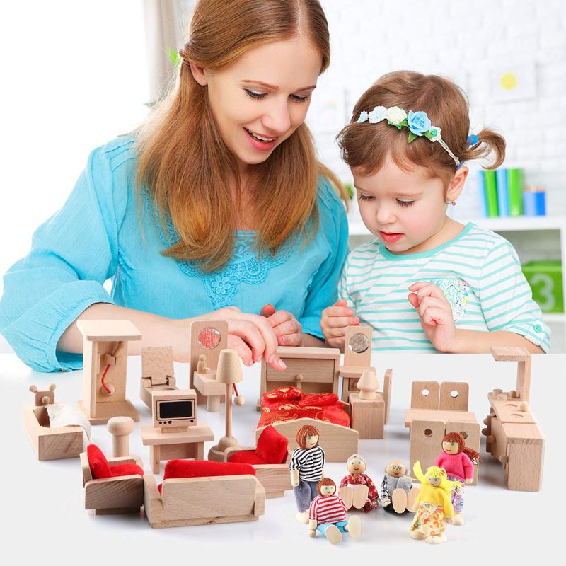 - SAFE TO PLAY: The sturdy dollhouse furniture play set is made of 100% natural wood, approved ASTM and CPSIA test, which is safe for 1 year old up boys and girls to play.
